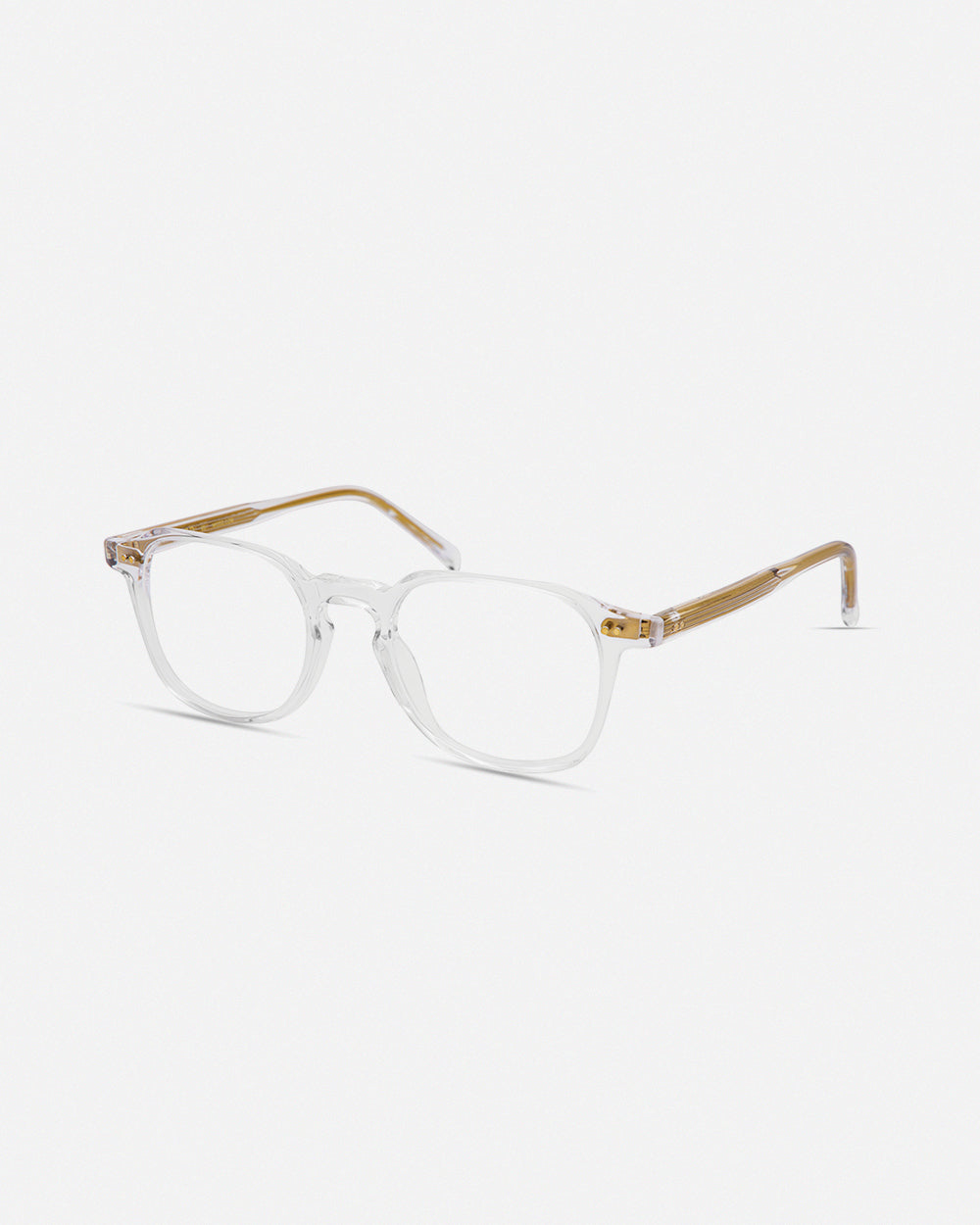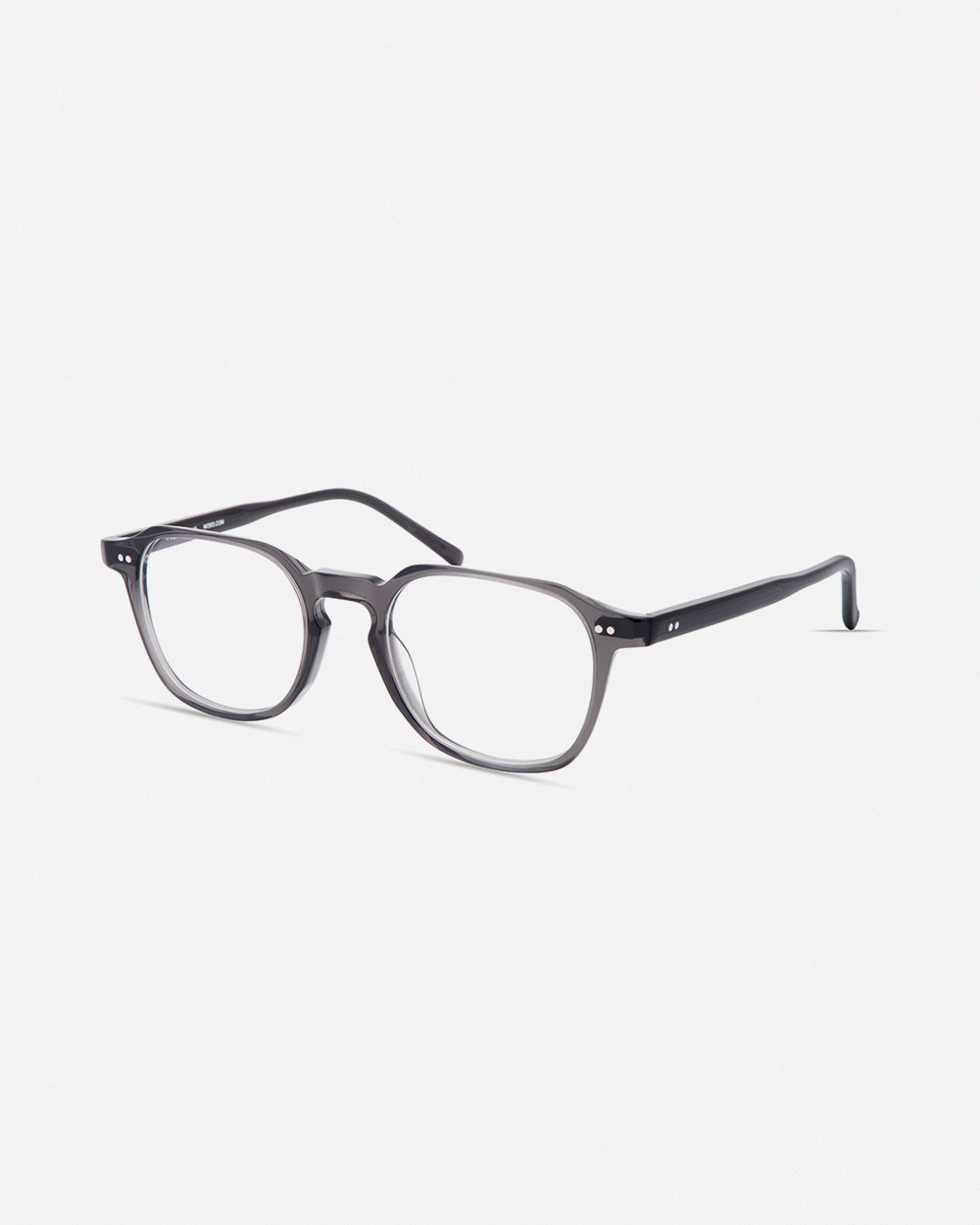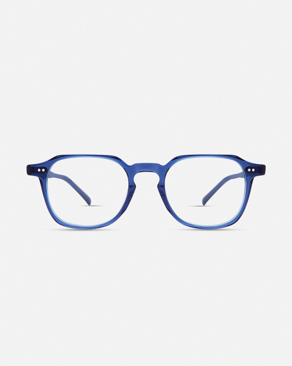 A sculpted square acetate frame with a keyhole bridge that adds lightness to the expression. The clean lines and subtle detailing create a calm, polished presence that feels timeless.