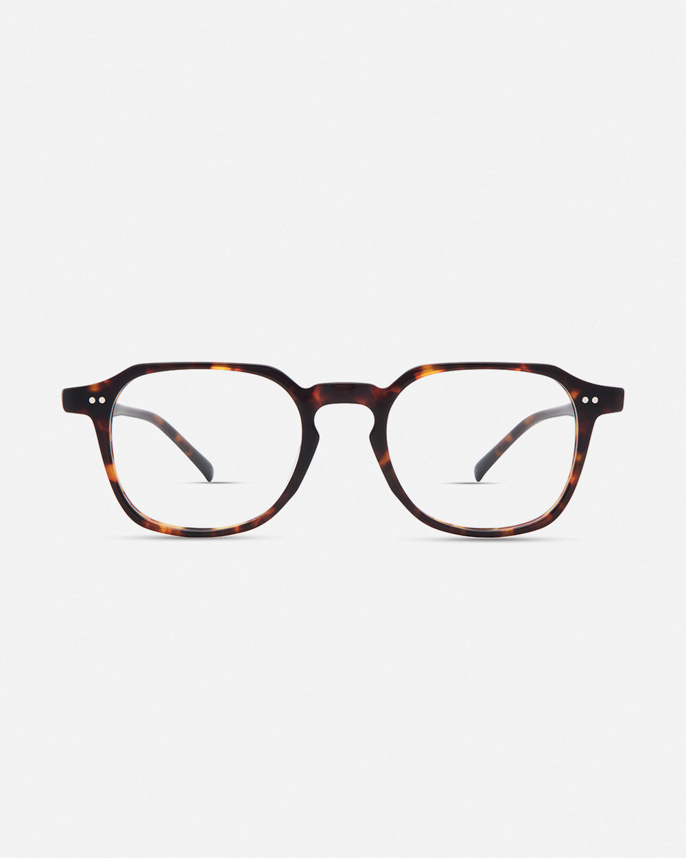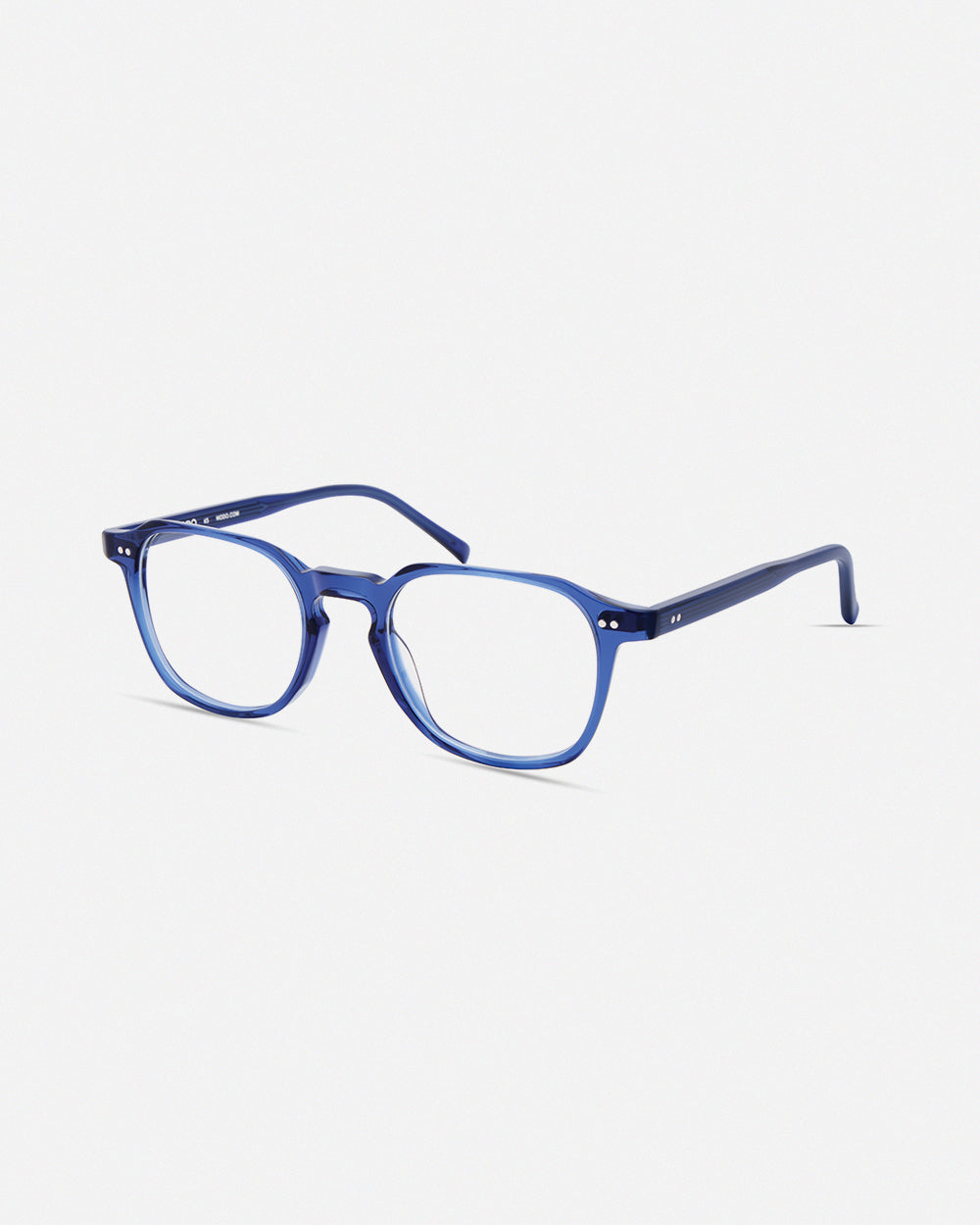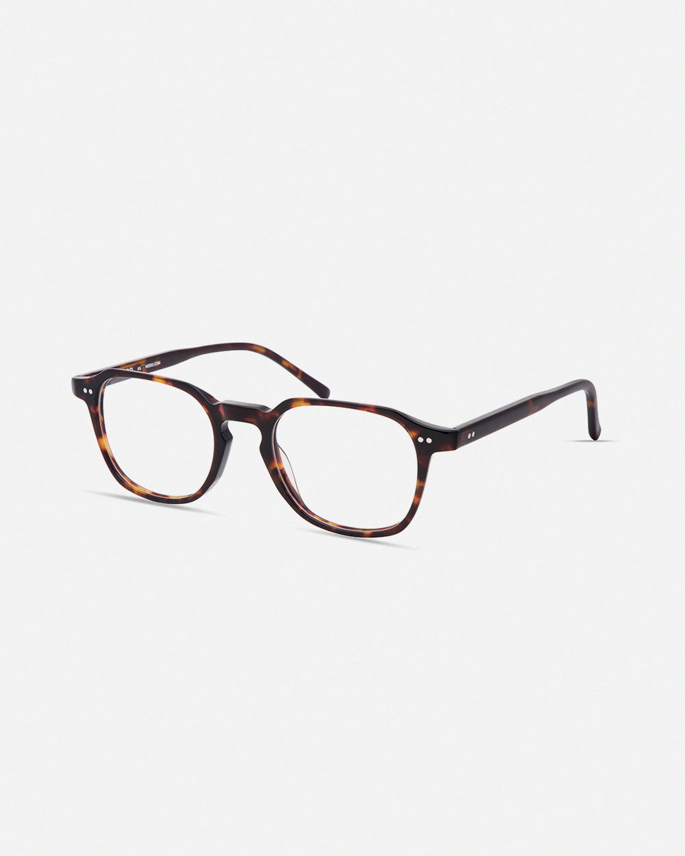 A sculpted square acetate frame with a keyhole bridge that adds lightness to the expression. The clean lines and subtle detailing create a calm, polished presence that feels timeless.